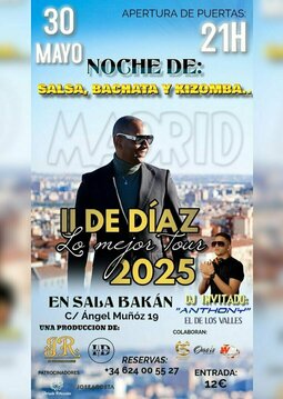 Prepárate para una noche llena de ritmo, pasión y buena vibra. Il De Díaz llega a Madrid con su esperado Lo Mejor Tour 2025, acompañado por el talento del DJ invitado Anthony "El de los Valles". Una experiencia única donde la kizomba, la salsa y la bachata te harán bailar sin parar.